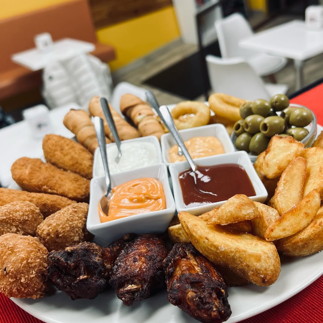 Transformamos nuestro espacio por las tardes en un vibrante bar donde podrás disfrutar de nuestras variadas raciones. Te ofrecemos sabrosos calamares, clásicas patatas bravas, cremosas croquetas y jugosas alitas, todo ello maridado con una selección de refrescantes cervezas, ideales para compartir con amigos.